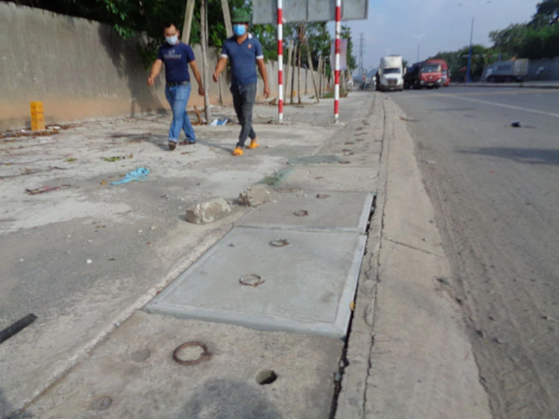 Báo Pháp Luật TP.HCM ngày 31-7 có đăng tin “Nắp cống nguy hiểm” phản ánh trên đường Mỹ Phước - Tân Vạn, đoạn ngay giao lộ với quốc lộ 1K (phường Bình Thắng, TP Dĩ An, Bình Dương) có nắp mương bị hỏng, trở thành mối nguy hiểm đối với người đi đường (ảnh 1).