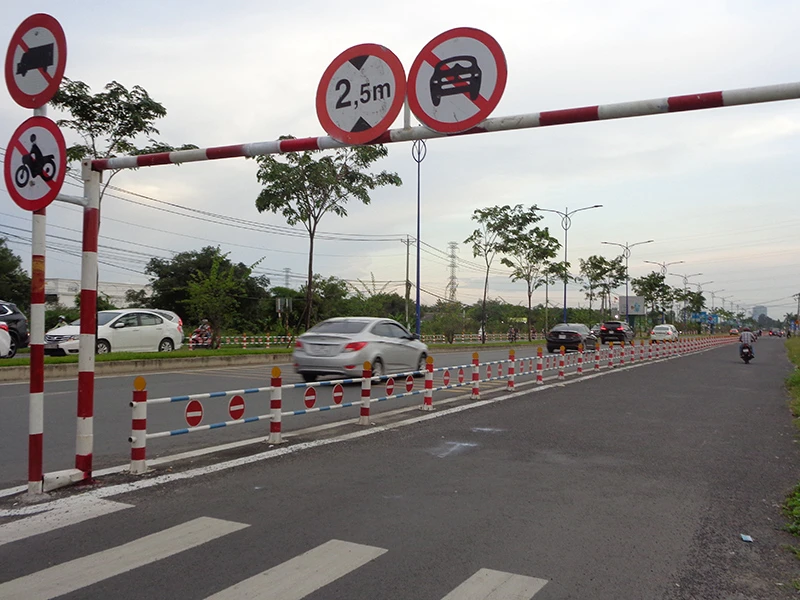 Mong các bác tài ô tô đừng chiếm đường để thanh chắn không còn biến dạng.