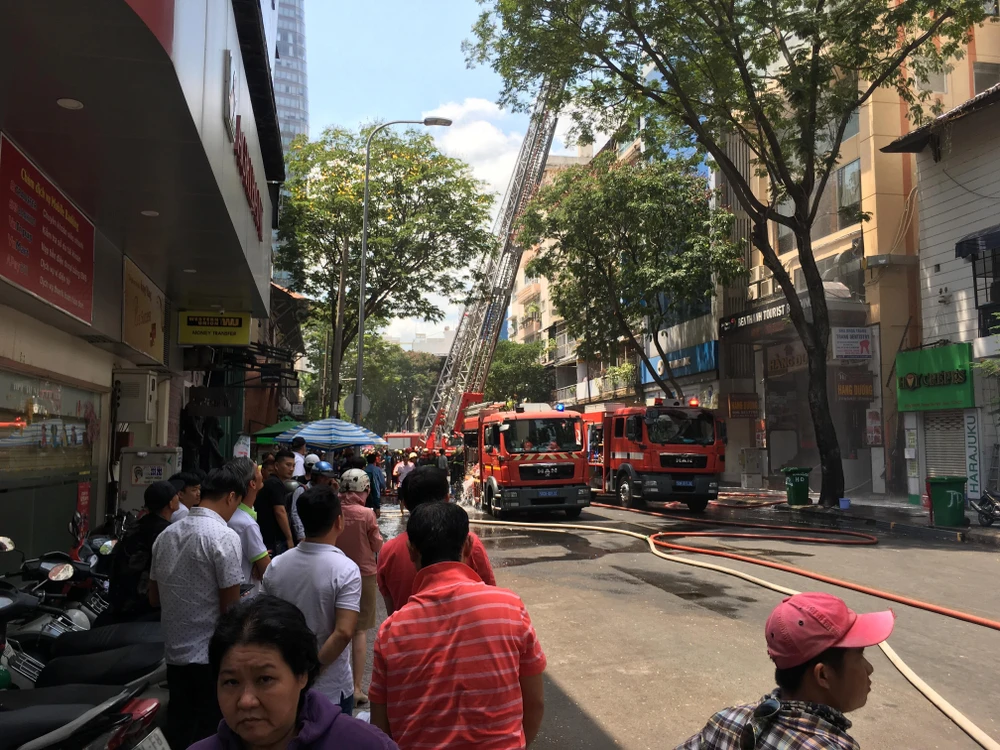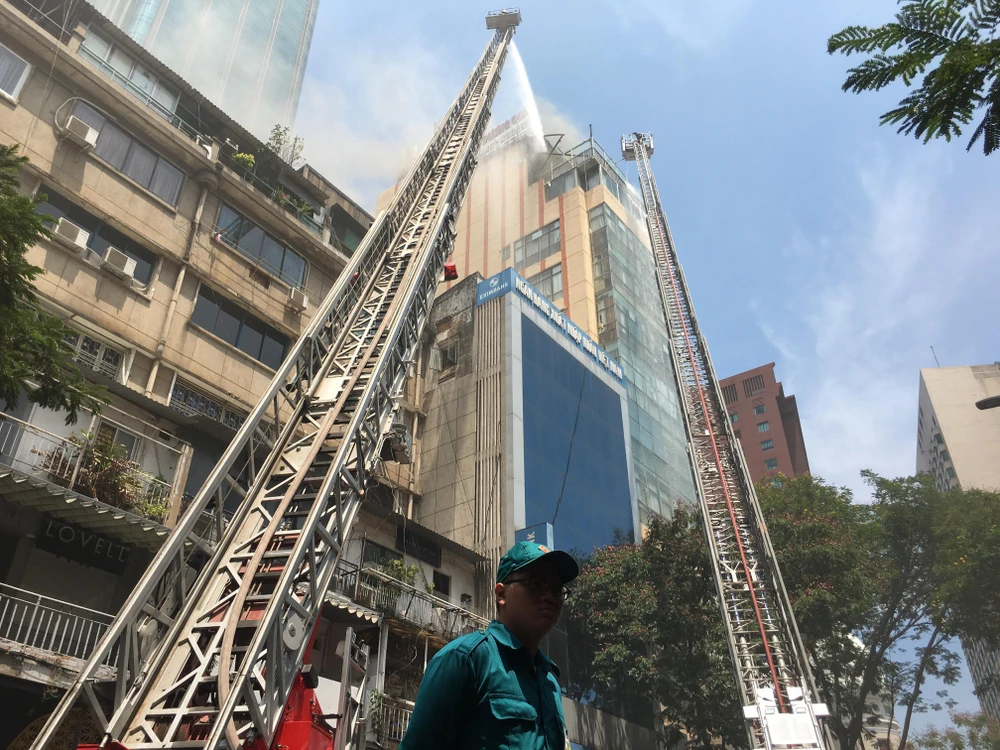 Đến 12 giờ trưa nay đám cháy cơ bản đã được khống chế. Hiện các xe thang vẫn đang phun nước vào khu vực này để dập tắt hoàn toàn đám cháy.