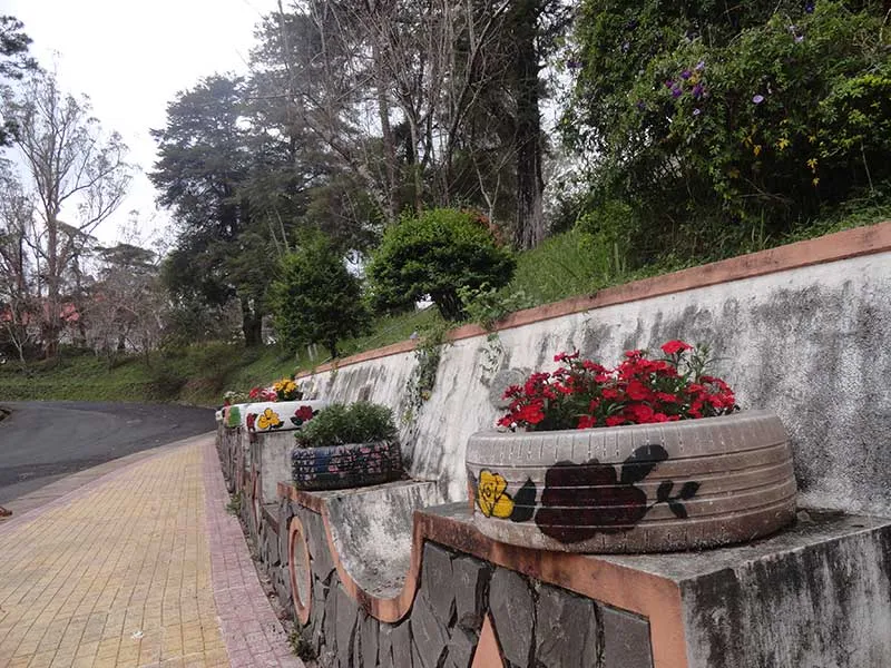 Chúng tôi rất ấn tượng với những vỏ ô tô, xe máy hỏng đã được tái sử dụng với nhiều mục đích và đặt ở nhiều điểm khác nhau. Đẹp nhất vẫn là những vỏ ô tô tạo thành những bồn hoa trải dài.