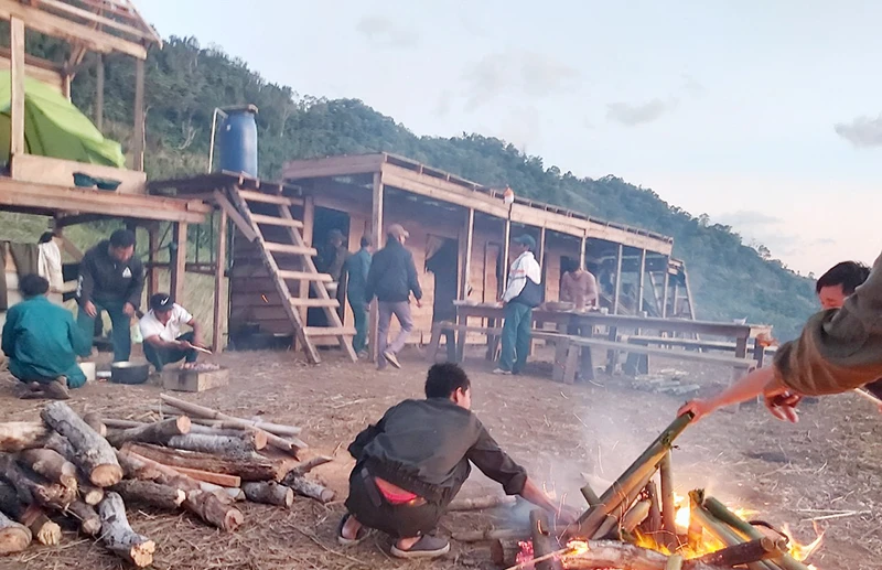 Trại bò, nơi đoàn du khách cắm trại tránh trú. Ảnh do Chủ tịch UBND huyện Khánh Sơn cung cấp