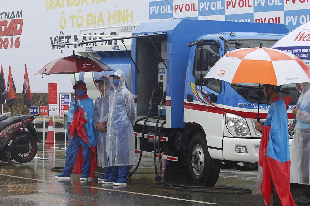 Khâu hậu cần cũng được chuẩn bị sẵn sàng để phục vụ các tay đua. Các nhân viên của PVOIL túc trực phía ngoài sân thi đấu để tiếp nhiên liệu cho các ô tô địa hình.