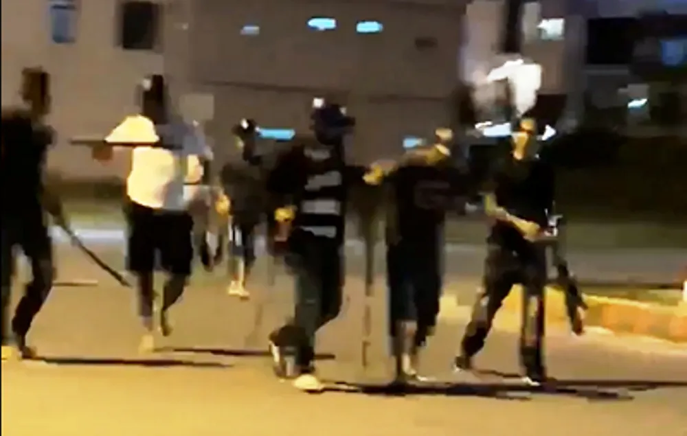 Một nhóm thanh niên với hung khí trong tay. Ảnh: H.H