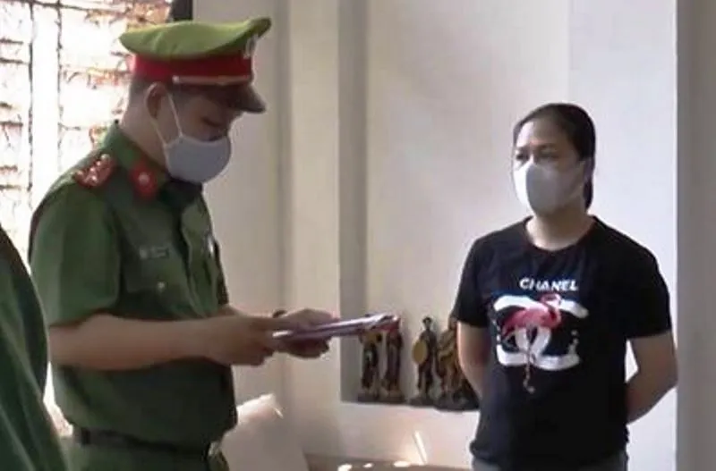 Công an đọc lệnh bắt tạm giam nghi phạm Nguyễn Thị Châu Sa. Ảnh: CTV