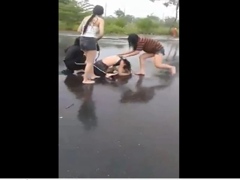 Trước đó, vào ngày 26-8, trên mạng xã hội xuất hiện clip ghi lại hình ảnh 3 nữ sinh lao vào đánh hội đồng một cô gái khác ngay giữa đường khi trời mưa.