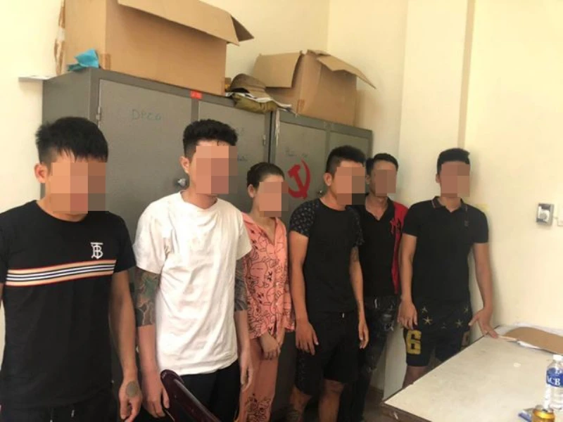 Nhóm thanh niên nam nữ vi phạm. Ảnh: C.A