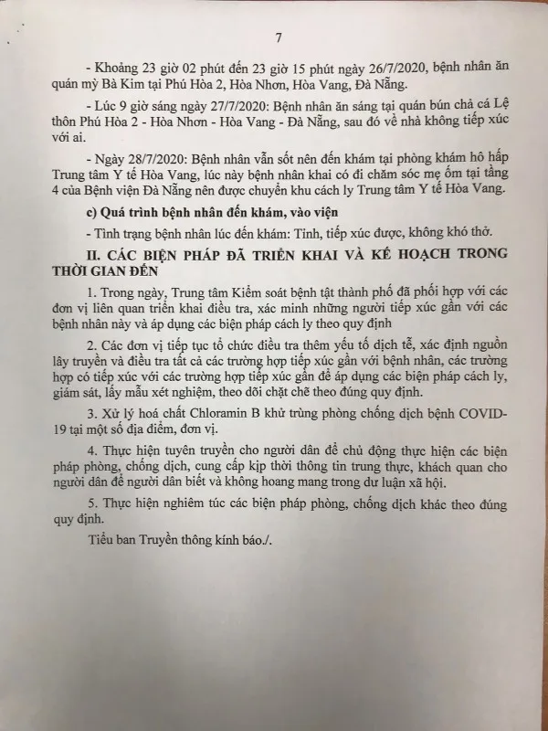 Trưa 30-7, Ban chỉ đạo Phòng chống dịch COVID-19 TP Đà Nẵng cung cấp thông tin về kết quả điều tra, giám sát, xử lý trường hợp tám bệnh nhân COVID-19 mới công bố sáng cùng ngày.