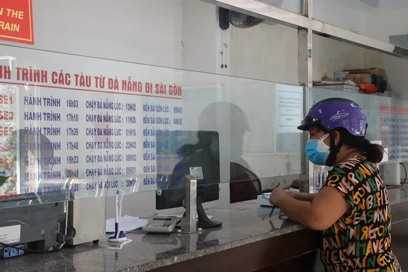 Còn tại ga đường sắt Đà Nẵng, chỉ thưa thớt một số người dân đến mua vé tàu. Lối nhà chờ không có khách, chỉ có một số nhân viên lau dọn, chuẩn bị nước sát khuẩn, khẩu trang.