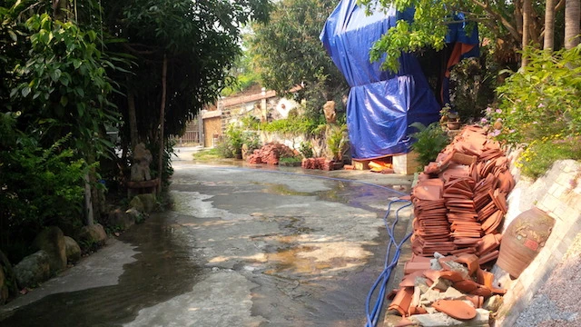 Gạch ngói được xếp hai bên đường đi sau khi tháo dỡ xong. Ảnh: LÊ PHI