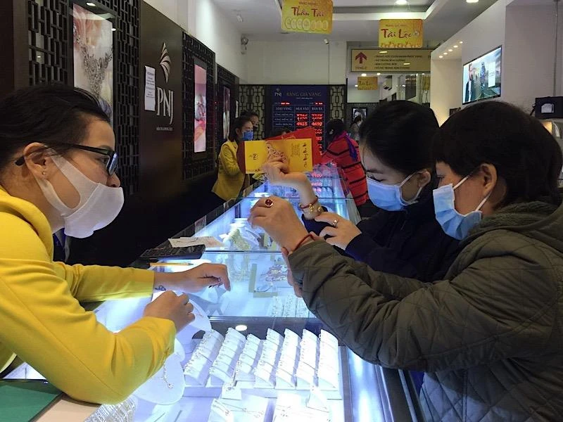 Điều khác biệt của ngày vía Thần Tài năm nay là hầu như tất cả khách hàng đi mua vàng đều mang khẩu trang y tế. Nhân viên của các tiệm vàng cũng mang khẩu trang để tư vấn cho khách nhằm tránh lây nhiễm dịch bệnh virus Corona.