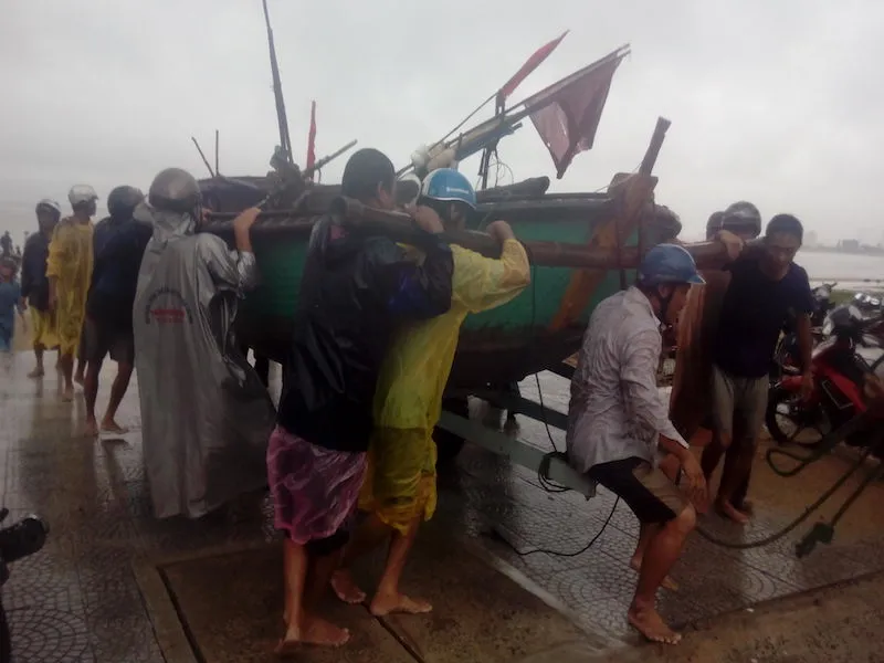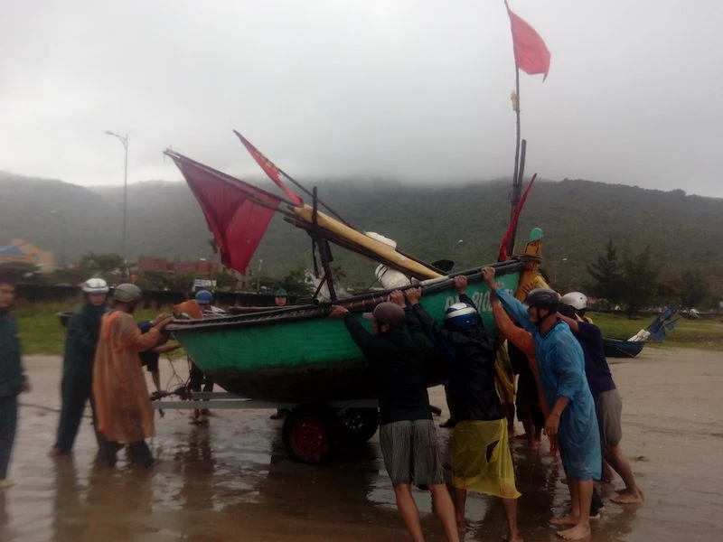 Các lực lượng chức năng thuộc các phường ven biển của TP Đà Nẵng như: Thọ Quang, Mân Thái… đã huy động toàn lực đưa tàu thuyền của ngư dân lên bờ. Đến 17 giờ chiều 12-9, các lực lượng chức năng quận Sơn Trà vẫn đang cố gắng đưa tàu thuyền của ngư dân phường Mân Thái lên bờ trong lúc trời mưa mù mịt. Ngư dân đã căng mình chống bão suốt cả chiều nay.