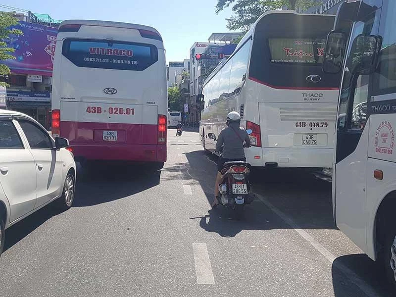 Trong khi đó, ông Nguyễn Xuân Bình, Phó Giám đốc Sở Du lịch TP Đà Nẵng, cho hay đơn vị đã tham mưu UBND TP ban hành giải pháp điều tiết xe khách du lịch tại các điểm nóng. Cụ thể, đối với khách tham quan khu vực nhà thờ chính tòa, cho phép bố trí khu vực dừng, đỗ phương tiện đón trả khách không quá năm phút tại đường Bạch Đằng. Đối với khách tham quan Trung Hưng Bửu Tòa, cho phép sử dụng tạm một phần diện tích trong khuôn viên sân vận động Chi Lăng để làm bãi dừng, đỗ ô tô, đón trả khách tham quan có thu phí. Ngoài ra, Đà Nẵng cho phép lắp đặt biển báo cấm dừng, đỗ xe trên 16 chỗ khu vực đường Ngô Gia Tự (đoạn từ Lê Duẩn đến Hải Phòng), đường Lê Duẩn (đoạn trước Bảo tàng Mỹ thuật Đà Nẵng).