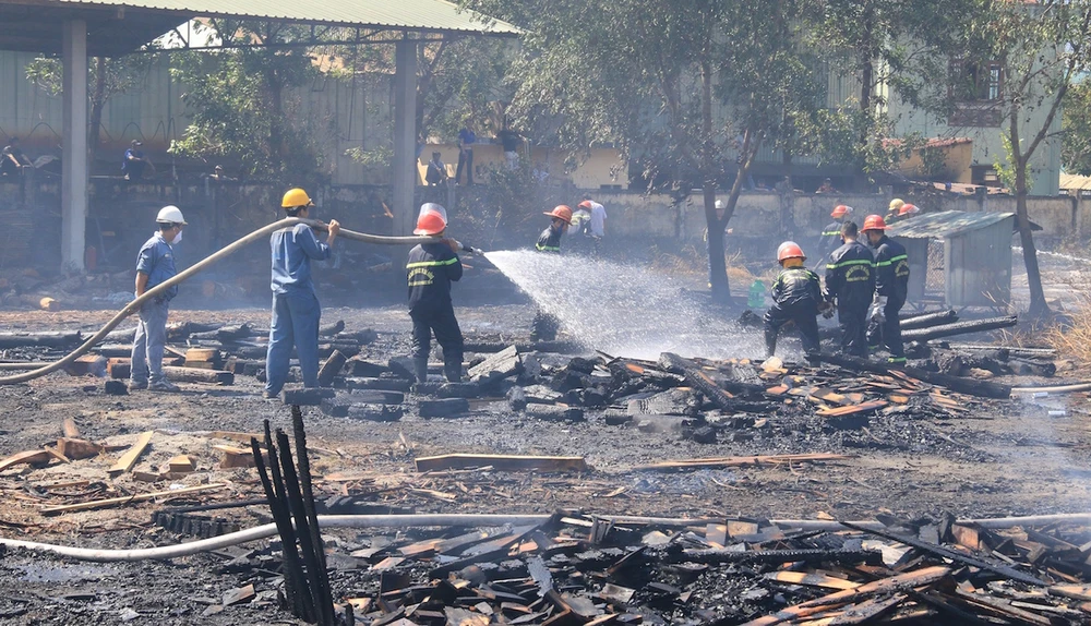 Hơn một tiếng sau khi đến hiện trường, các chiến sĩ cảnh sát PCCC đã tìm cách tiếp cận và khống chế được đám cháy. Rất may là vào thời điểm trên đám cháy không gây hậu quả về người. Tuy nhiên, một số lượng lớn về gỗ đã bị cháy rụi.