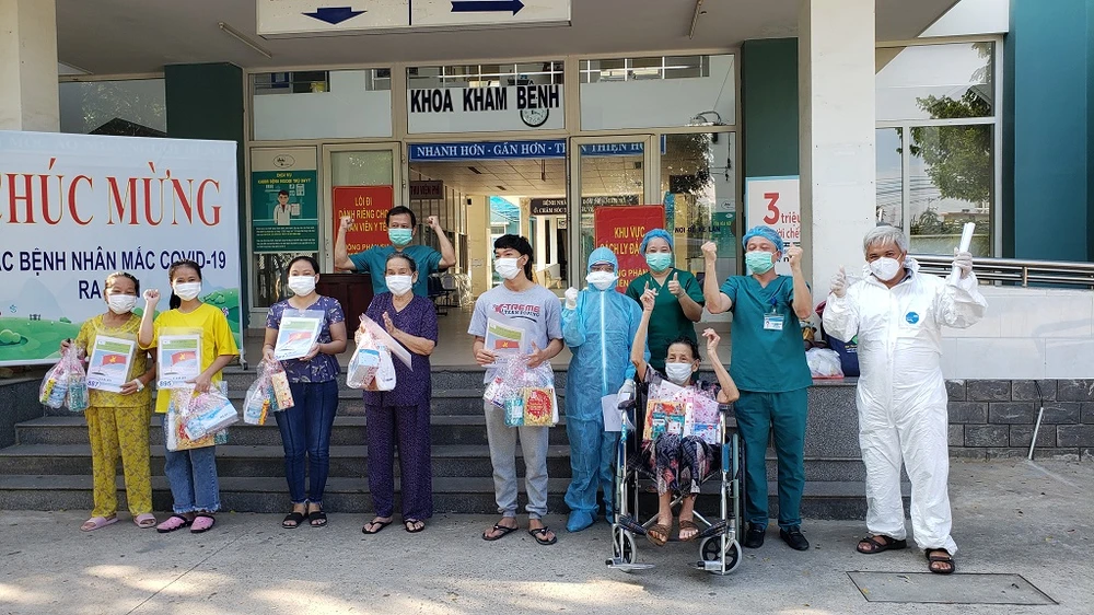 Các bệnh nhân COVID-19 tại Bệnh viện dã chiến Hòa Vang được công bố khỏi bệnh và xuất viện. Ảnh: T.AN