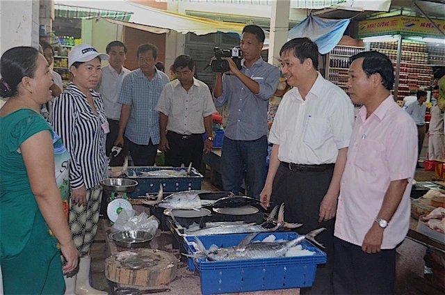 Ông Đặng Việt Dũng, Phó Chủ tịch UBND TP Đà Nẵng, kiểm tra một điểm bán cá sạch.