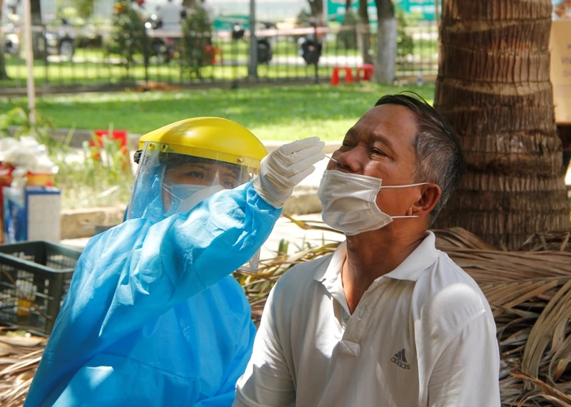 Xét nghiệm COVID-19 theo đại diện hộ gia đình tại Đà Nẵng. Ảnh: TẤN VIỆT