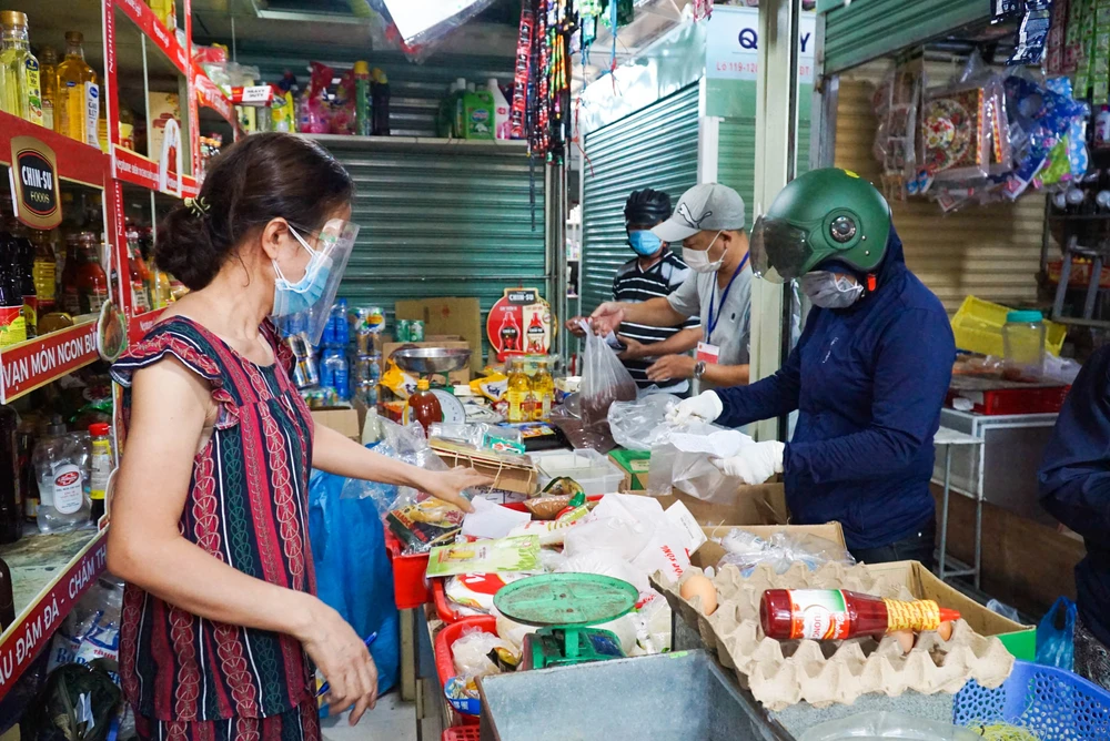 Địa phương đã phân chia thời gian đi chợ cho các đại diện ban điều hành ở TDP, tuy nhiên đến 8 giờ sáng nay, phần lớn những mặt hàng tươi sống tại chợ đã hết hàng. Những người đến chợ sau 8 giờ phần lớn không thể mua đủ hàng.