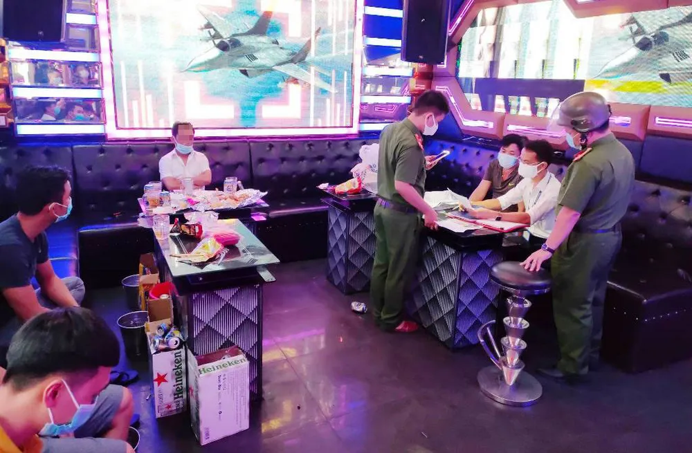 Công an bắt quả tang phòng karaoke đang hoạt động, bất chấp dịch COVID-19. Ảnh: H.H