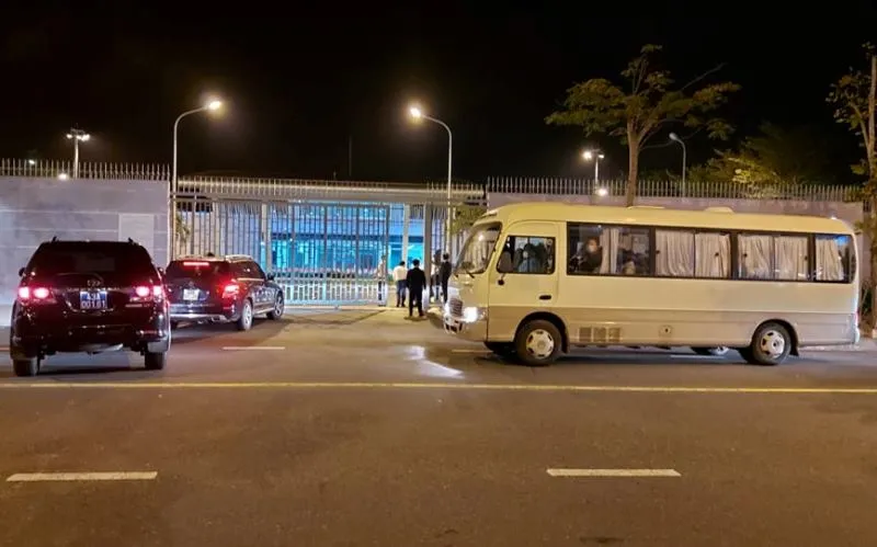 Đoàn xe đưa 18 du khách Hàn Quốc từ Đà Nẵng về nước tối 25-2. Ảnh: TẤN VIỆT