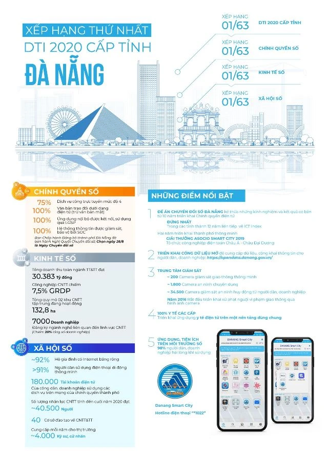 Việc TP Đà Nẵng đứng thứ nhất toàn quốc ở cấp tỉnh, nhất ở cả ba tiêu chí là: chính quyền số, kinh tế số và xã hội số là thành quả, mục tiêu mà TP này đã đặt ra.