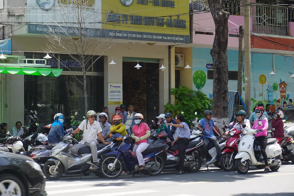 Phụ huynh Đà Nẵng chờ con thi giữa trời nắng nóng. Ảnh: KIỀU VŨ