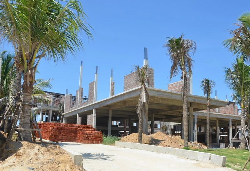 Ngoài ra, chủ đầu tư dự án đã cho thi công phần bờ kè phía mặt ngoài giáp với mặt biển bằng các khối bê tông cốt thép rời kè chắn ngoài bờ biển khi chưa được cơ quan có thẩm quyền cấp phép.