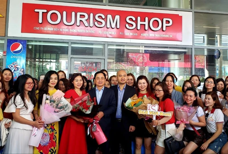 Lãnh đạo Sở Du lịch TP Đà Nẵng đón đoàn khách MICE từ Hà Nội. Ảnh: T.AN