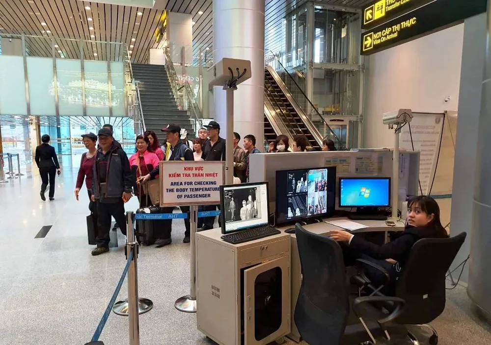 Người Trung Quốc qua máy quét nhiệt tại sân bay Đà Nẵng: Ảnh: HẢI HIẾU
