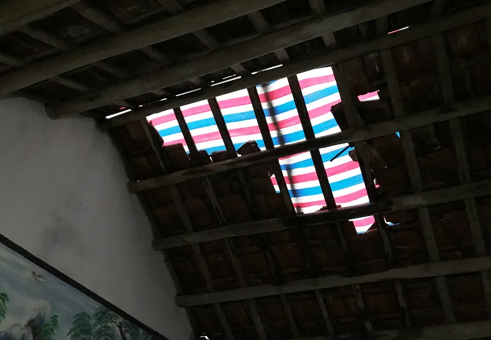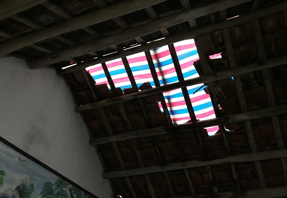 Tương tự, nhà vợ chồng cụ Bé mái ngói cũng bị gió tốc.