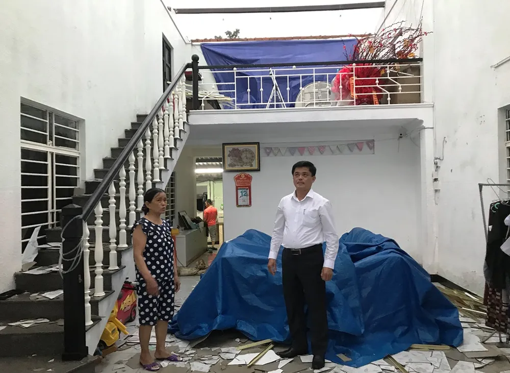 Theo bà Thái Thị Lập (chủ nhà), thời điểm trên, bà đang ngồi trong nhà thì gió run mái tôn bần bật, hai mẹ con bà bỏ chạy tìm nơi ẩn nấp thì vừa lúc mái nhà tốc lên, hất sang nhà hàng xóm.