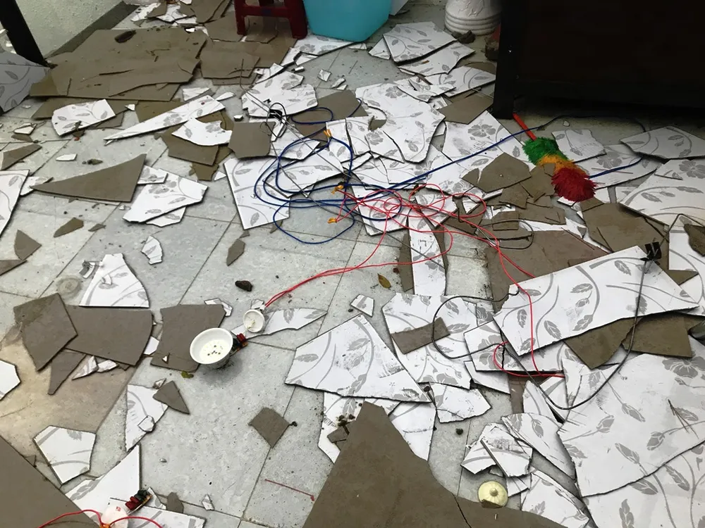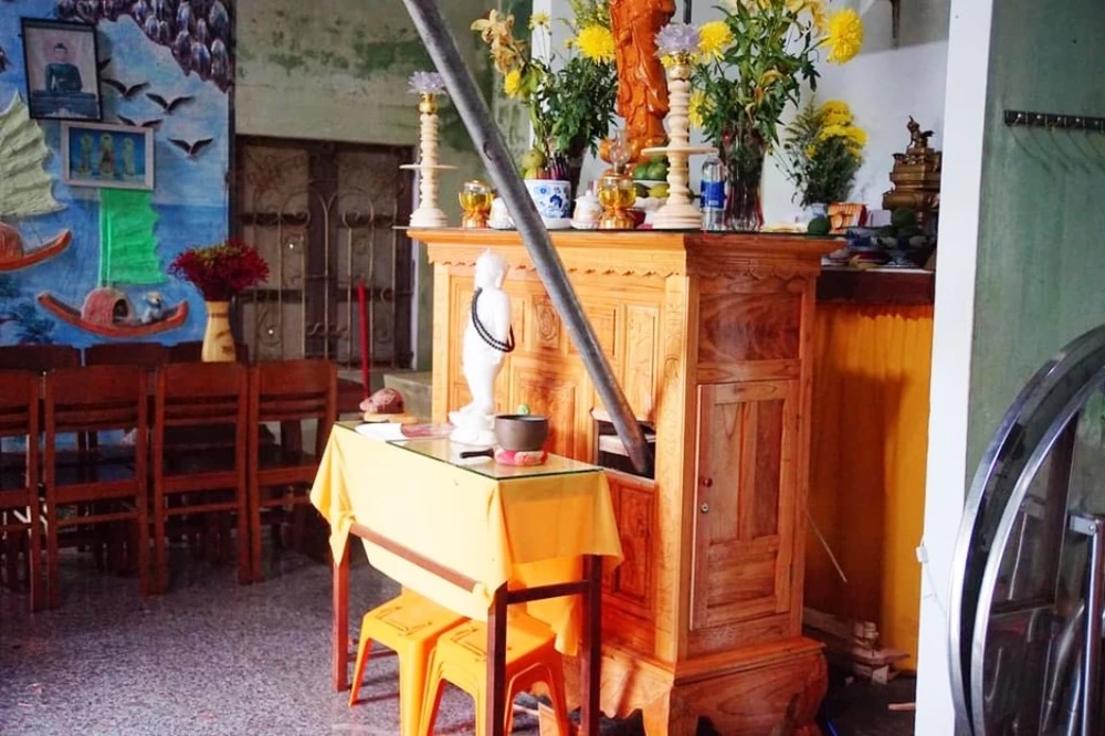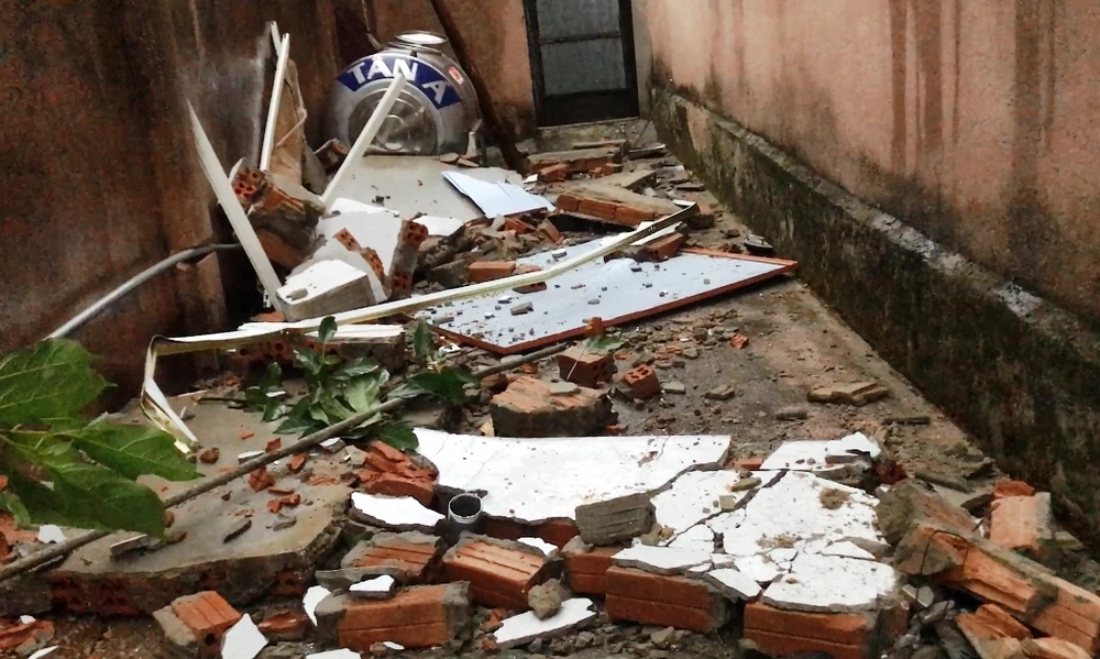 Một thanh sắt của nhà bà Lập bay sang nhà cụ Bé, cắm vào bàn thờ.