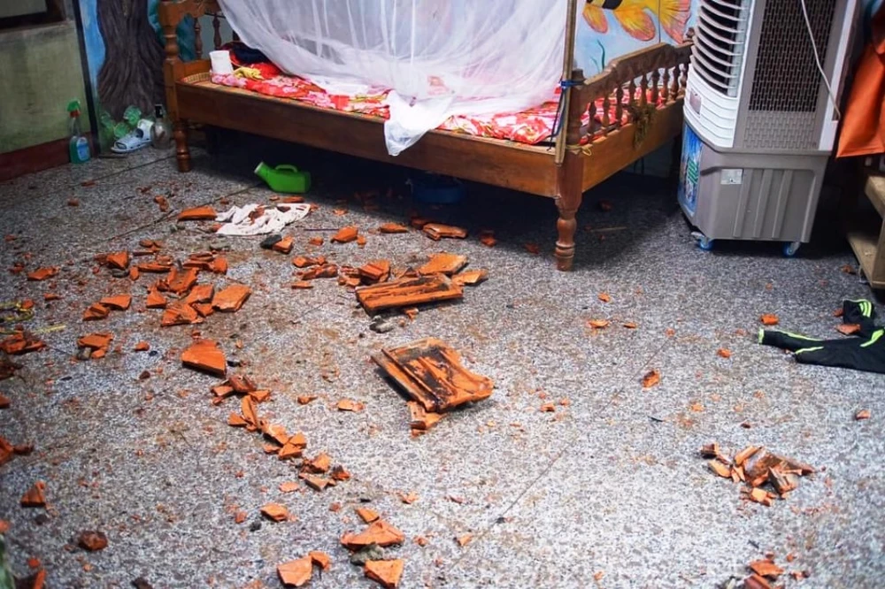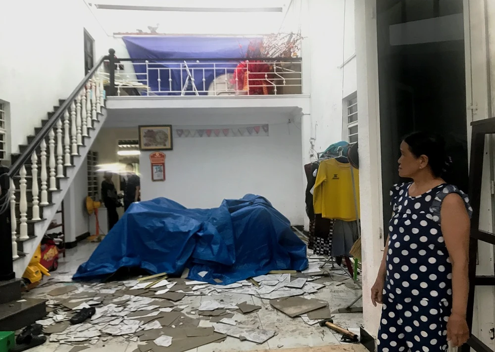 Ngói rơi ngay giường ngủ.