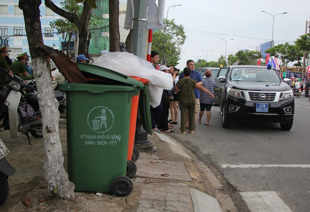 Thùng rác được tăng cường để thu gom rác trong các đêm thi pháo hoa. Ảnh: Hải Hiếu