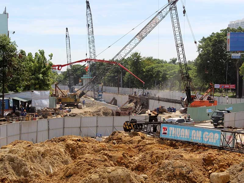 Là một trong những công trình trọng điểm chào mừng Tuần lễ cấp cao APEC 2017 được tổ chức vào tháng 11 tới nhưng hiện nay hầm chui Điện Biên Phủ - Nguyễn Tri Phương vẫn ngổn ngang.