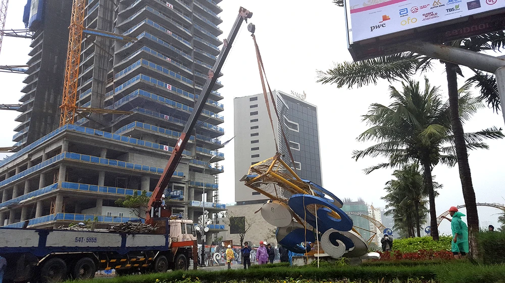 Đặc biệt, hàng ngàn mét pano, bảng quảng cáo, thông tin, hình ảnh APEC dựng dọc tuyến Hoàng Sa - Võ Nguyên Giáp - Trường Sa đổ sập, bị xé toạc. Tại trung tâm thành phố, cây cối ngã đổ ngổn ngang, rác thải la liệt.