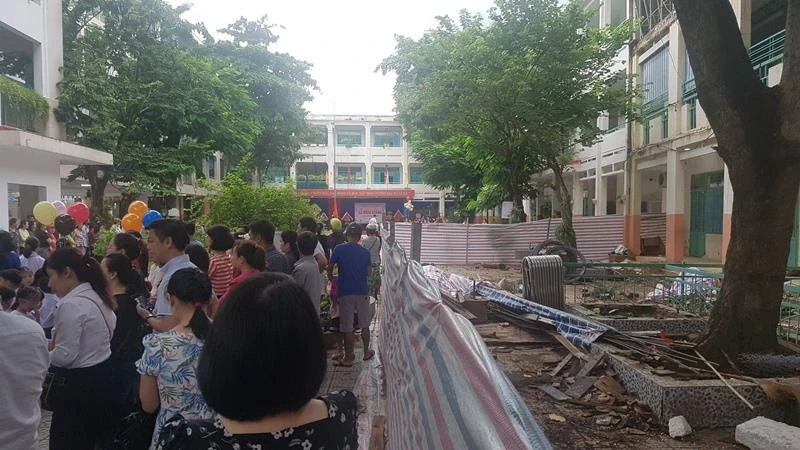 Ghi nhận tại lễ khai giảng sáng 5-9 Trường Tiểu học Nguyễn Du (quận Hải Châu) mất 1/4 không gian sân trường do phải rào lại đảm bảo an toàn. Cụ thể là khối nhà làm việc của Ban giám hiệu nhà trường, thư viện… đang sửa chữa. Tầng ba của khối nhà này còn trơ giàn giáo, việc thi công đình trệ, tất cả bị cấm vào bên trong khu vực xây dựng. Trường Tiểu học Trần Cao Vân (quận Hải Châu) cũng chỉ vừa kịp hoàn thành việc sửa chữa đủ cho lễ khai giảng diễn ra.