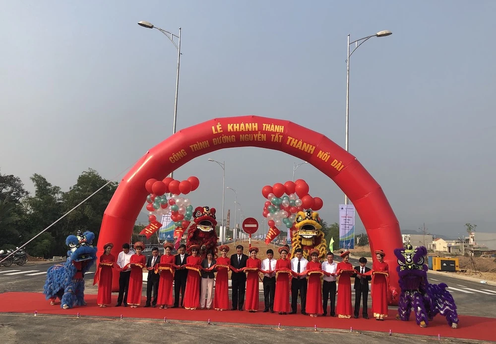 Lãnh đạo TP Đà Nẵng cắt băng khánh thành đường Nguyễn Tất Thành nối dài. Ảnh: HOÀI AN