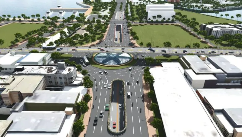 Theo thiết kế, nút giao có đường hầm dài hơn 900 m chạy bên dưới đường Duy Tân đến chân cầu Trần Thị Lý. Trên đường 2 Tháng 9 bố trí cầu vượt thép. Tầng mặt đất bố trí đảo xuyến.