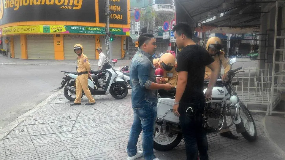 Lực lượng CSGT xử lý các trường hợp vi phạm. Nguồn ảnh: CSGT Đà Nẵng cung cấp.
