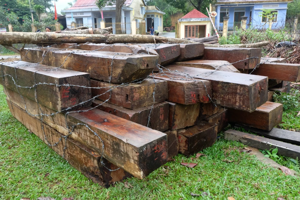 Một phần gỗ của rừng đặc dụng Bà Nà-Núi Chúa bị khai thác và cất giấu trái phép vừa bị phát hiện. Ảnh: LÊ PHI