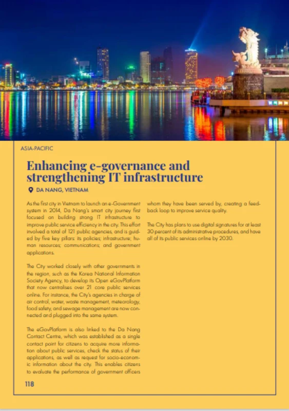 TP Đà Nẵng nằm trong Top 30 chính quyền TP thông minh khu vực và nằm trong Top 5 tại khu vực châu Á – Thái Bình Dương cùng bốn TP khác cùng khu vực là Banyuwangi, Semarang, Penang, Khon Kaen.