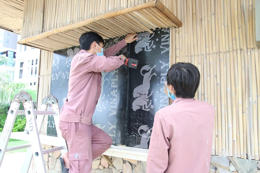 Các nhà hàng, khách sạn ven biển được chằng chống, gia cố để tránh hư hỏng do bão. Ảnh: TA