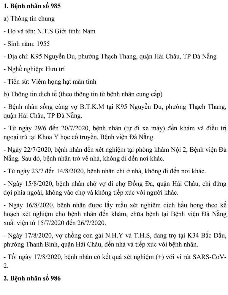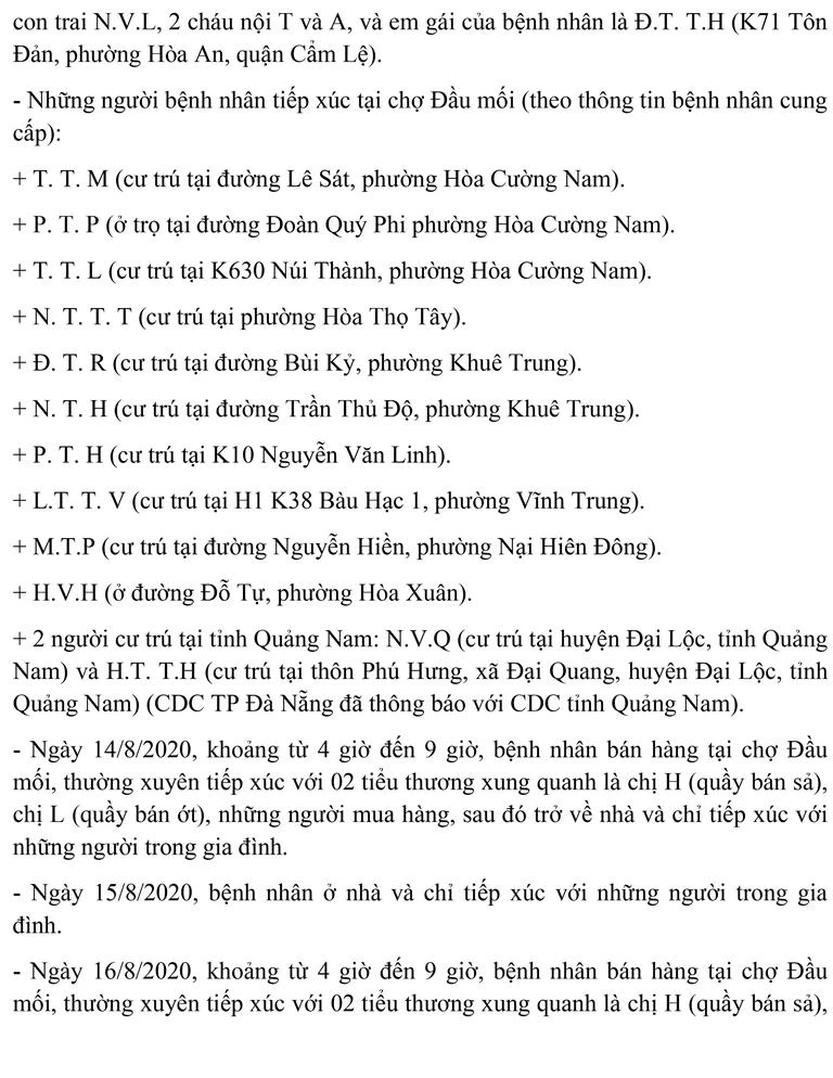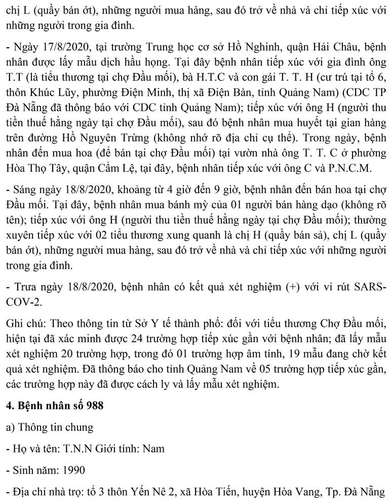 Trong số này có Bệnh nhân 987 kinh doanh tại Chợ đầu mối Hòa Cường và tiếp xúc rất nhiều người.