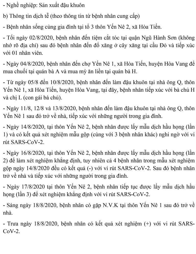 Tối 19-8, Ban chỉ đạo Phòng chống dịch COVID-19 TP Đà Nẵng cung cấp thông tin về kết quả điều tra, giám sát, xử lý đối với bốn bệnh nhân mắc COVID-19 được công bố ngày 18-8.