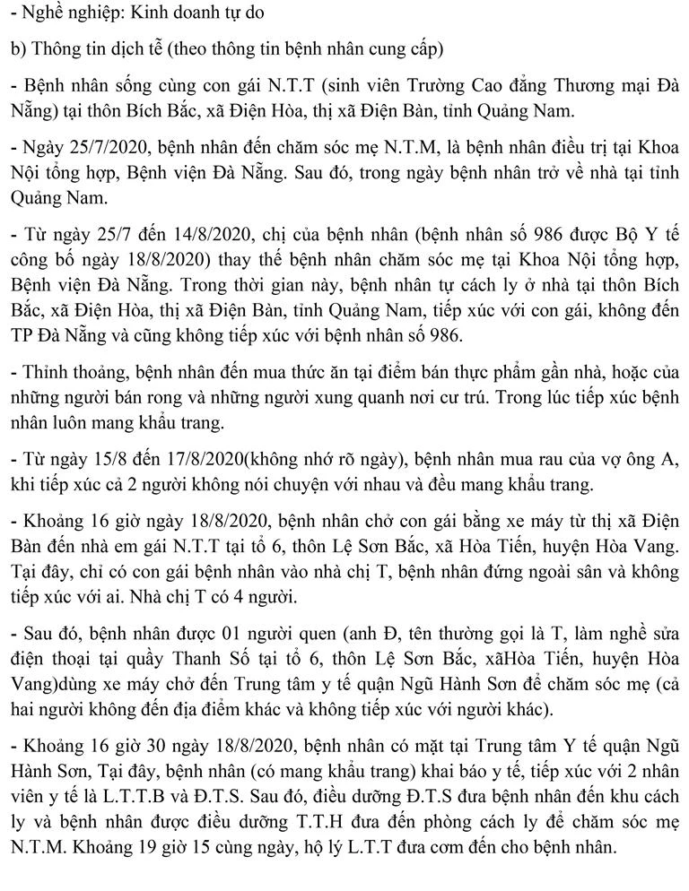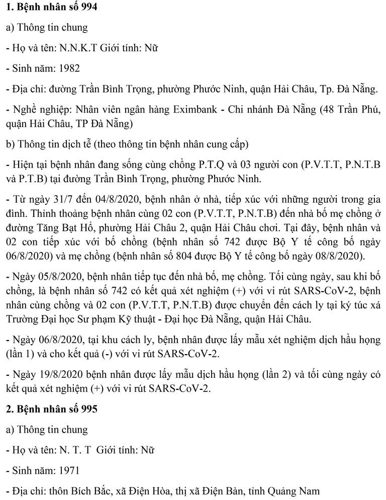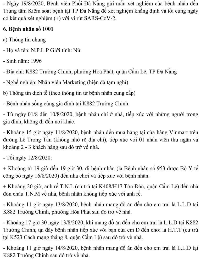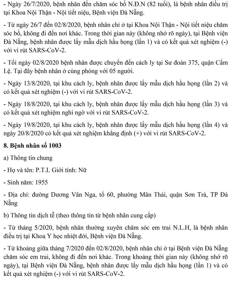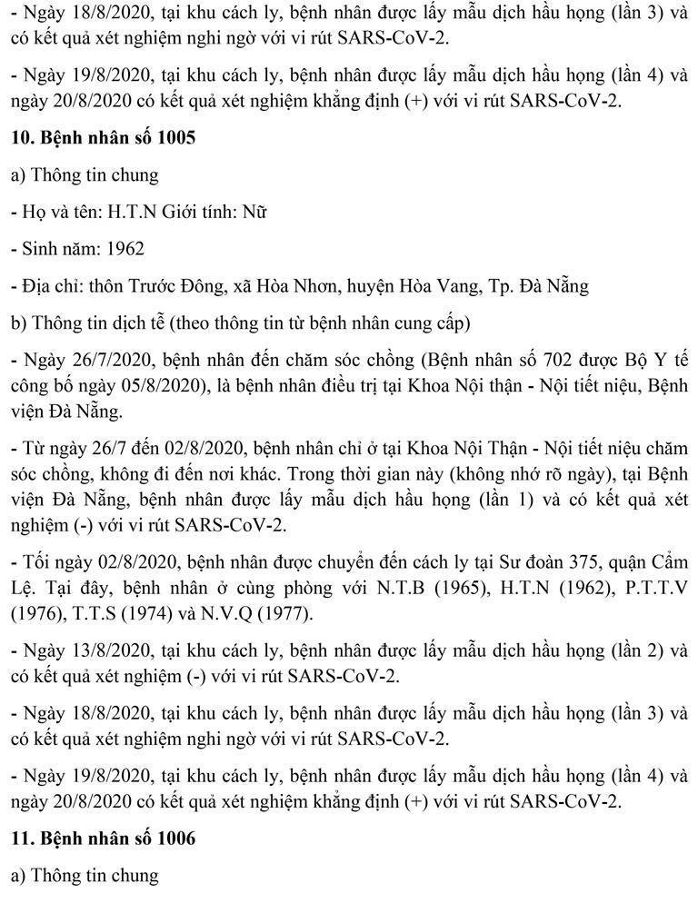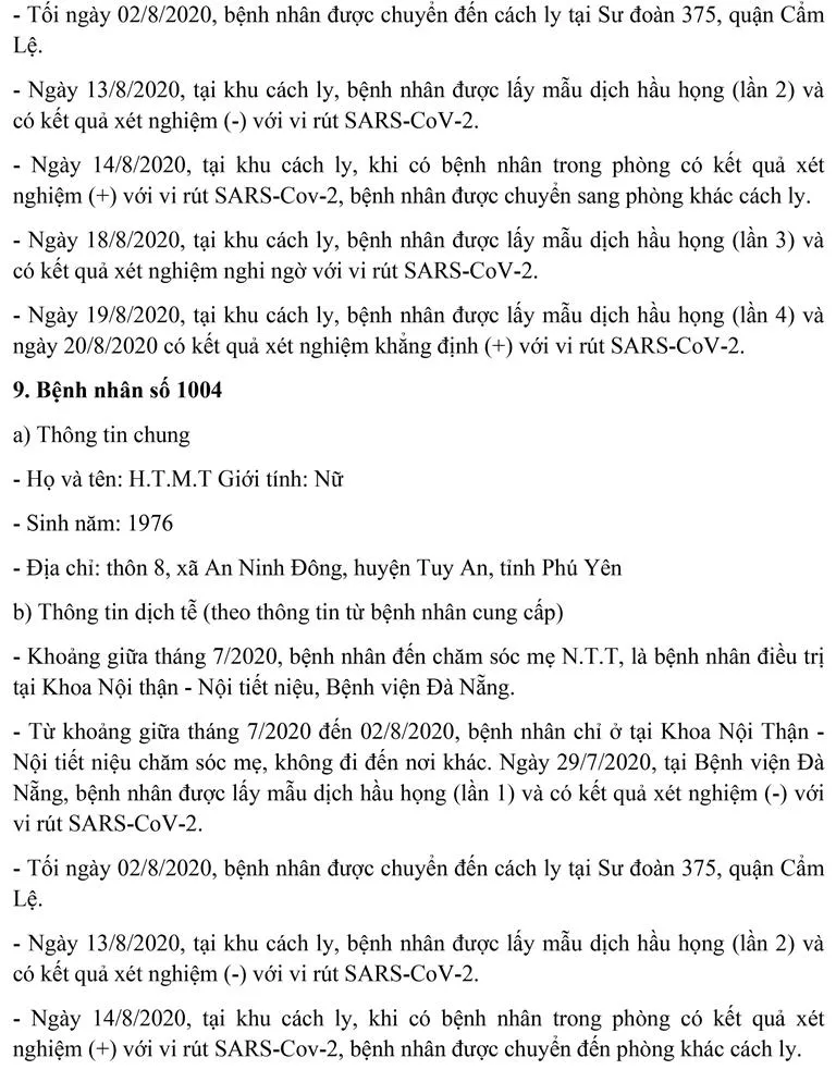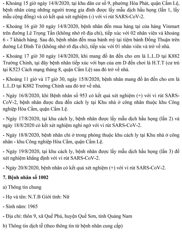Sáng 21-8, Ban chỉ đạo Phòng chống dịch COVID-19 TP Đà Nẵng cung cấp thông tin về kết quả điều tra, giám sát, xử lý đối với 11 bệnh nhân mắc COVID-19 được công bố ngày 20-8.