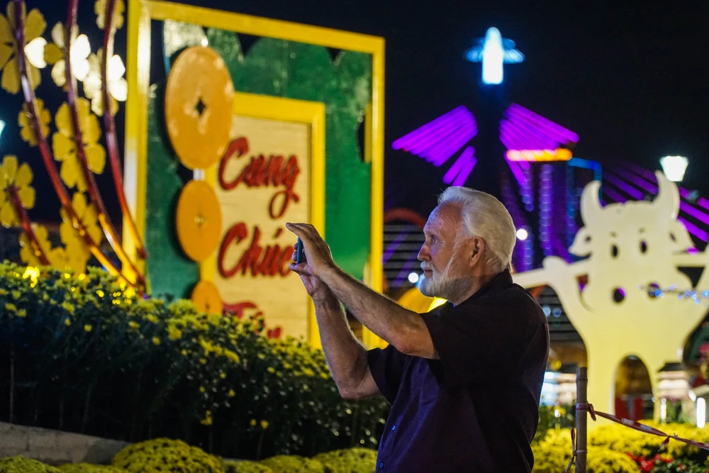 Một du khách người Đức cảm thấy ấn tượng trước vẻ đẹp của đường hoa xuân năm nay