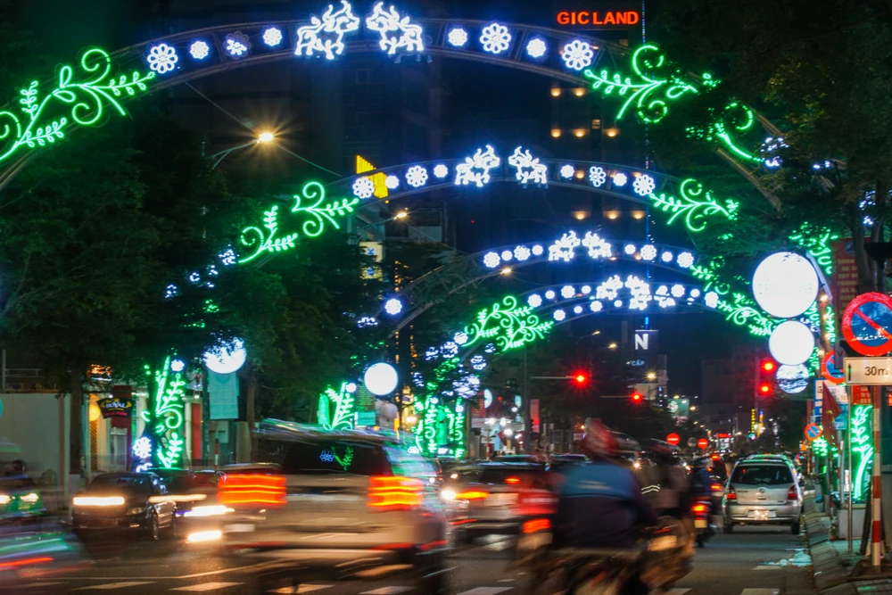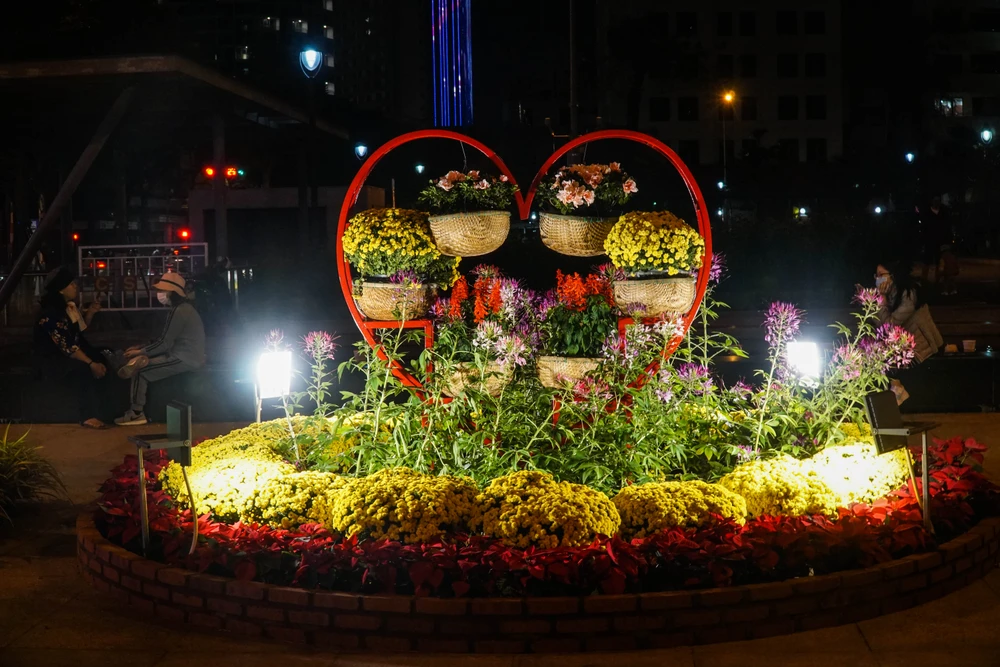 Nhiều điểm trang trí hoa tại đường Bạch Đằng lung linh ánh sáng về đêm