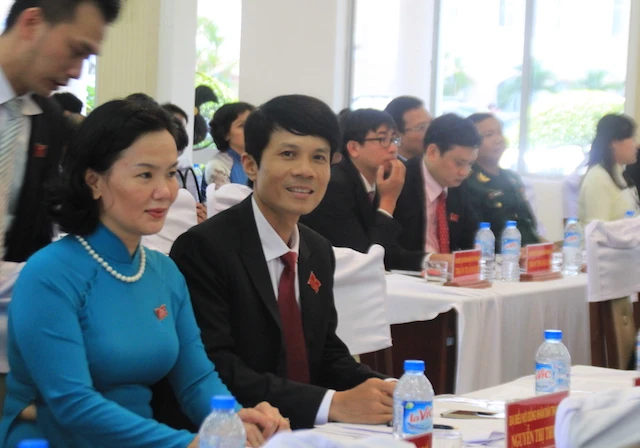 Ông Huỳnh Đức Thơ, Chủ tịch UBND TP Đà Nẵng (giữa), tiếp tục được bầu giữ chức chủ tịch TP nhiệm kỳ 2016-2021 với 100% số phiếu. Ảnh: LÊ PHI