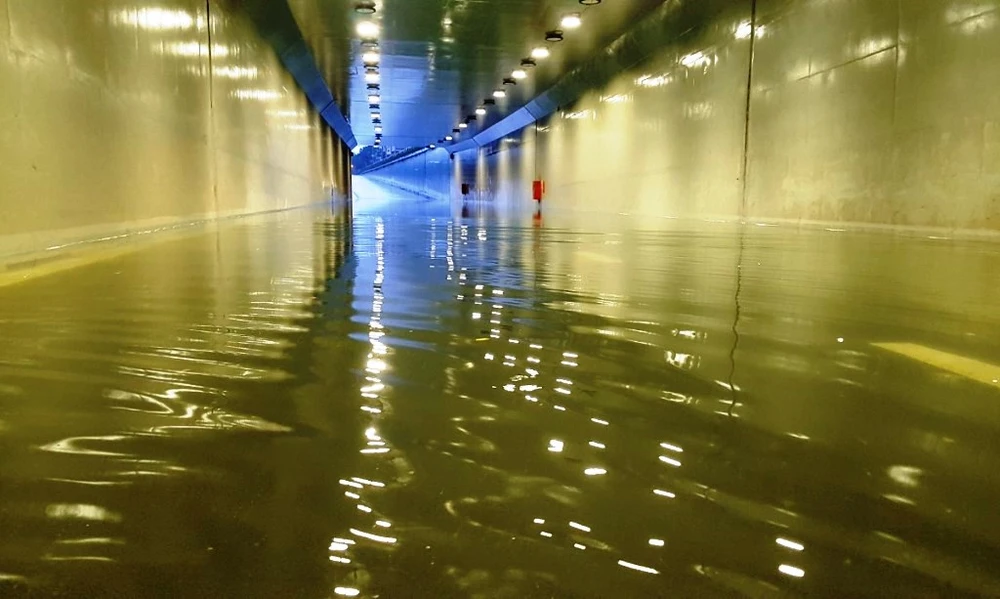 Hầm chui Điện Biên Phủ ngập nặng, lực lượng chức năng đã cấm xe vào. Hầm chui này được dầu tư để phục vụ cho Hội nghị cấp cao APEC 2017