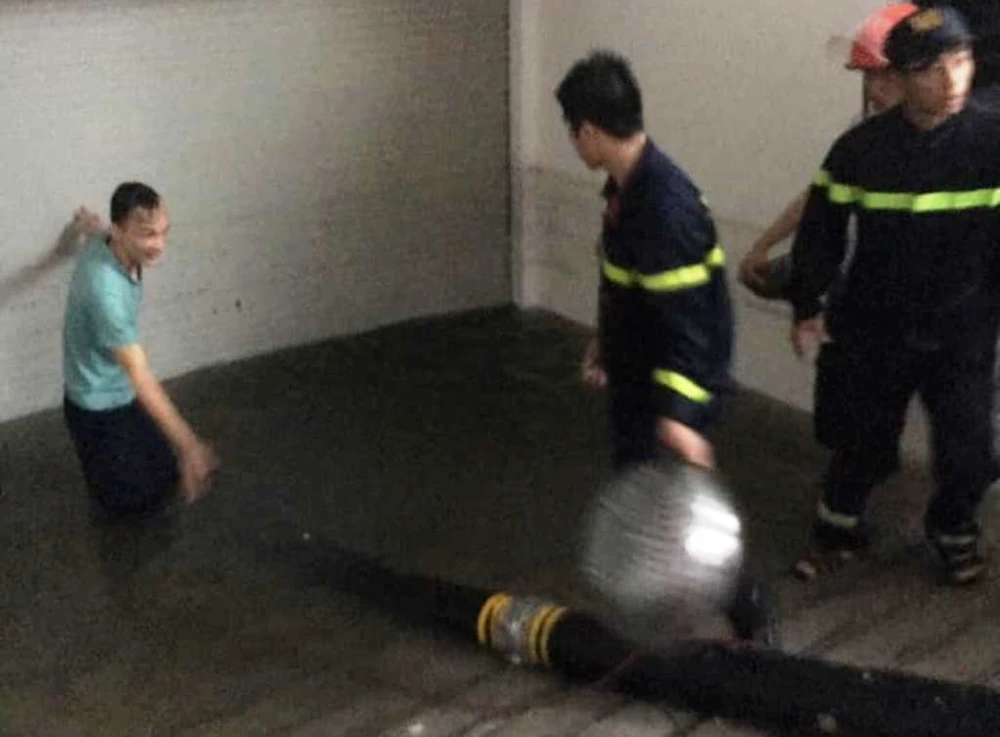 Lực lượng PCCC bơm nước giải cứu tầng hầm